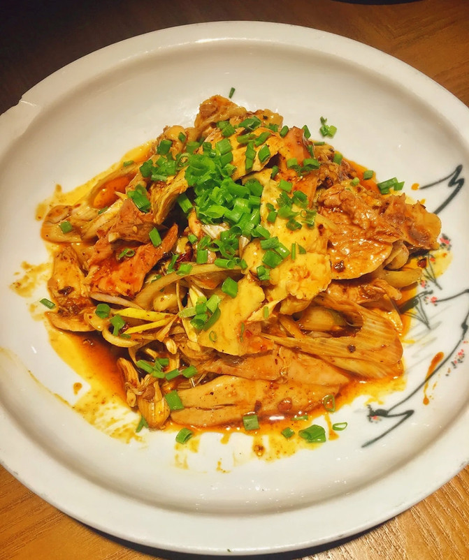 缘贡自贡菜·川菜馆(春熙路店)缘贡土鸡片:土鸡片大多是带点鸡皮的鸡肉片,加了葱片,口感清爽,撒上秘制红油,辣度刚刚好。
