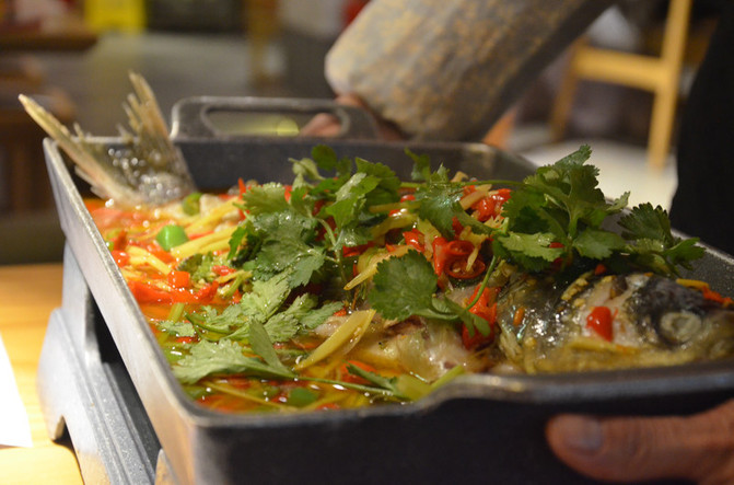 豉香全鱼:这里面的鱼是花鲢,刺比较多,吃的时候要小心哦,鱼肉特别细腻入味,味道也超赞,嫩滑可口,简直让人欲罢不能。