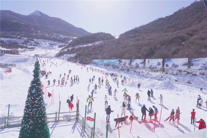 太子岭滑雪场到了滑雪场,首先就是要去景区大门买票,然后买雪具,鞋子、滑雪板、雪仗和租用滑雪装备了,今天的人超级多,排队都好久啊,由此可见这里的人气真的是超高的。
