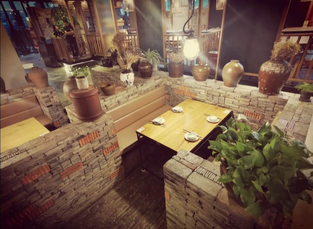 位于致民路的鱼夫鱼仔看似普通,但内里却极具古风,以传统的渔家风格为主,古朴而不失庄重,做旧的木质门窗和一些农家用的斗笠、蓑衣作为装饰品,让人感觉像是穿越回古时打渔人家的场景,古香古色,韵味十足。