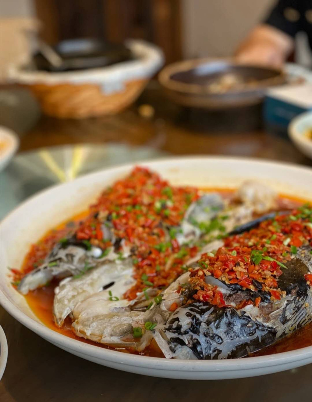 进门处,是一排装着不同品种鱼的鱼缸,乌鱼、花鲢、江团、裸斑等等各个品种的鱼都有,选好自己喜欢吃的鱼,然后在现杀现称,这样完美的确保了鱼的新鲜,最后切片用木盘端上来,精致又好看。