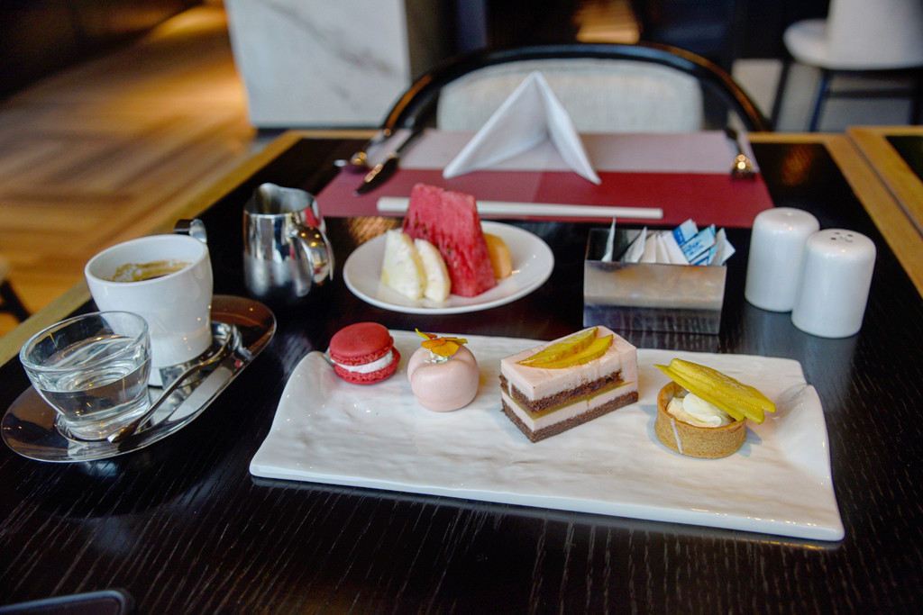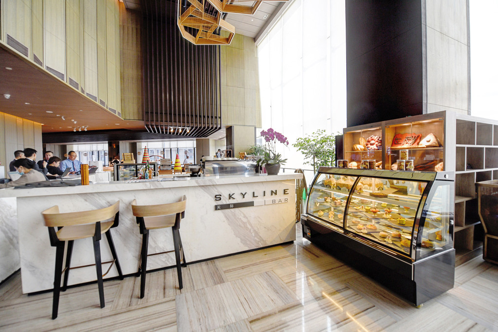 大堂的左手边除了休息区之外,还有“SKYLINE”天空吧,虽然来来往往的人很多,但是大家都很安静,很少有遇到吵闹的客人,午后的时光可以在这里喝下午茶:一杯咖啡,几个甜品,一盘水果,再随手翻翻书,一个完美的下午如此简单。据说酒店新推出了“蜜桃下午茶”,有机会的话一定要去体验。