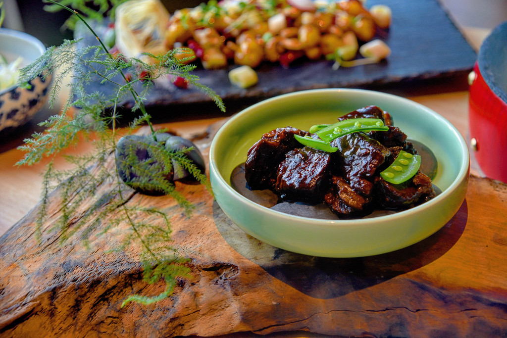 其他菜品也是色香味俱全,竹荪蛋虽然是素菜,但是却采用了“宫保”的做法,酸甜开胃;窝窝头包肉来源于当地农家菜,通过摆盘之后也显得很大气;最好评的烧牛肉,将烧好的牛腩放在石头上,牛腩都很大块,以瘦肉为主,吃起来肉质很紧实但完全不会腻,再撒上豆角,颜值高也非常的美味。