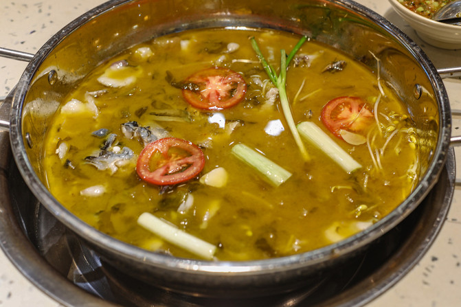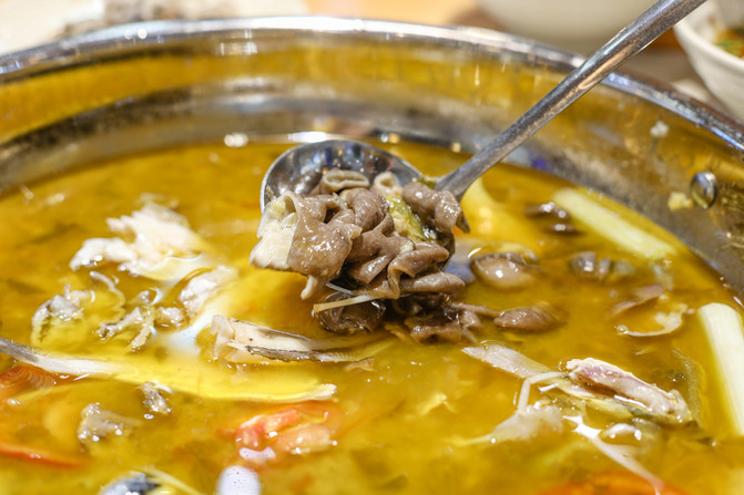我点了乌头鱼、耗儿鱼、和肥肠几种食材,各种不同的肉类对喜欢吃肉的我来说,绝对是极大的满足。而锅底,我选择了酸菜锅底,酸菜微酸的味道特别适合夏日,格外开胃。而且酸菜中还加入了一点的花椒和辣椒,没有重麻重辣,但是微微的麻辣味道非常清爽开胃。
