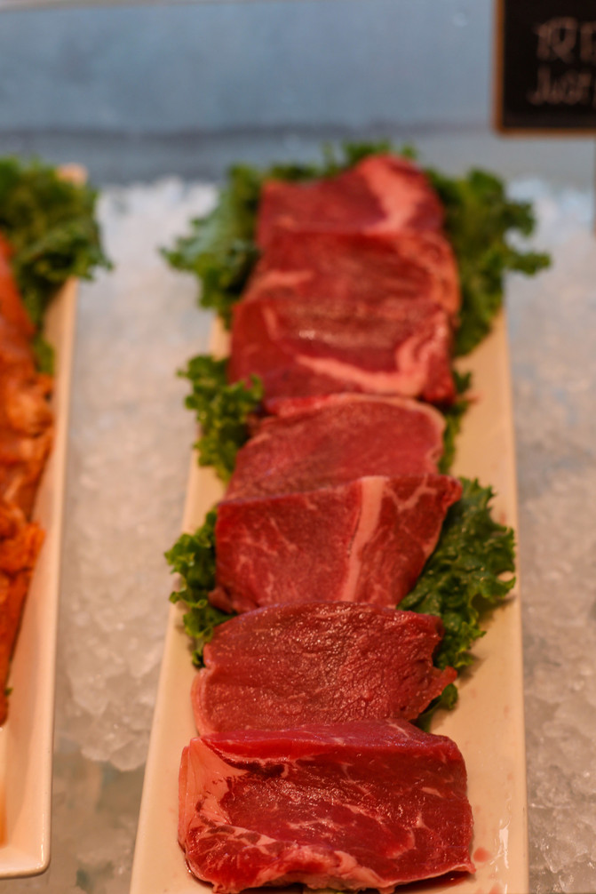 这里的食材种类颇多,放在保险柜中,食材那新鲜的色泽就已经让人食指大动。