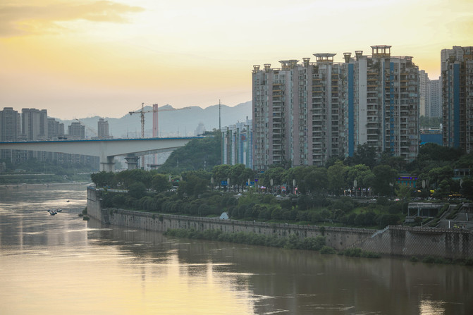 一边是山,另一边是流淌的大江,这也是属于 重庆 独有的景色。