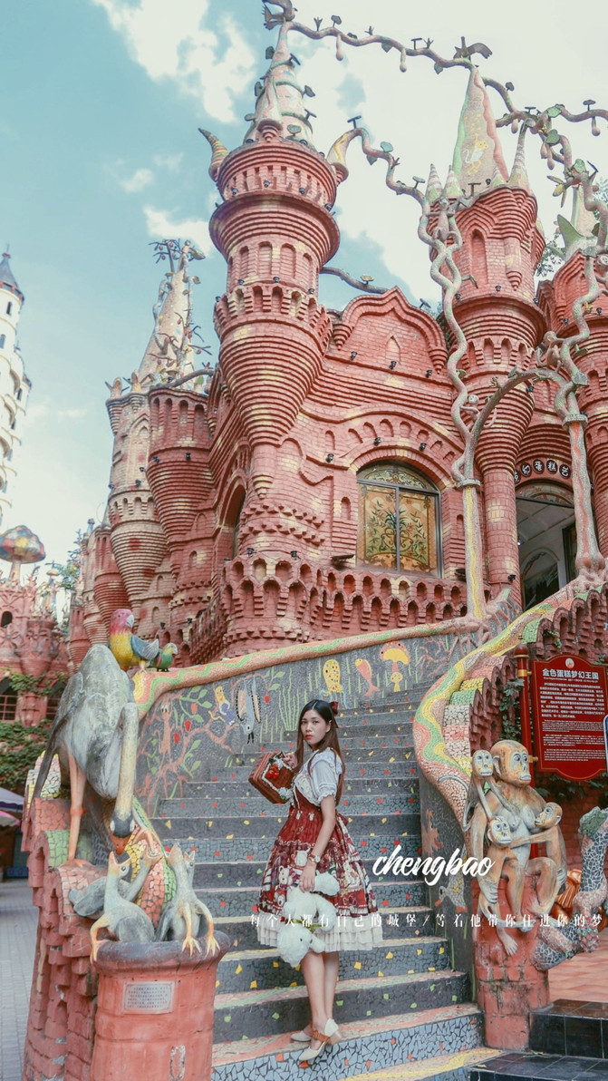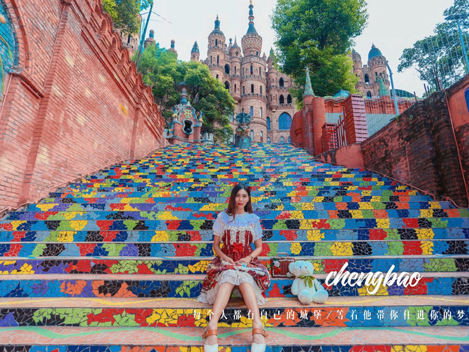 城堡的颜色非常鲜艳,鲜艳的城堡就如同童话中的世界,非常梦幻。