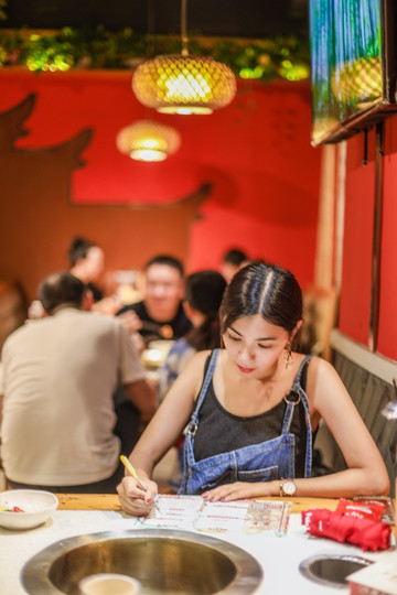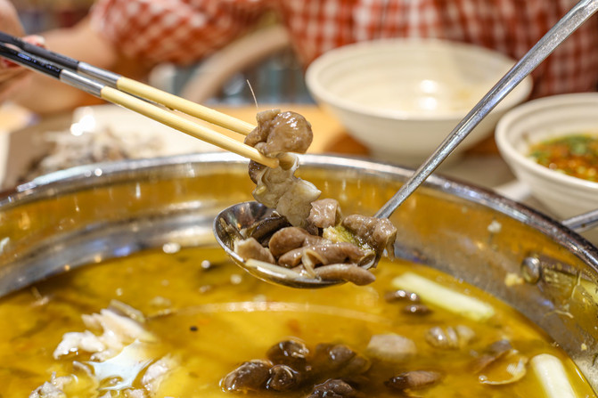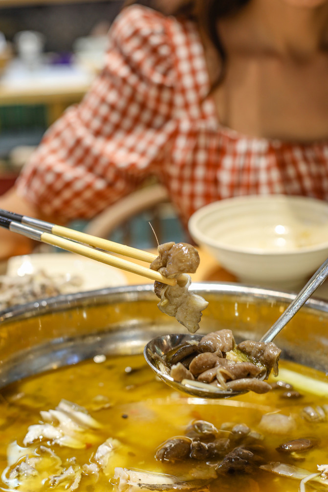 除了串串,这里的其他食材也非常新鲜。毛肚和鹅肠爽脆,脑花嫩滑,看着自己挑选的各种美味食材在滚烫的锅底中翻滚,也是一种幸福。