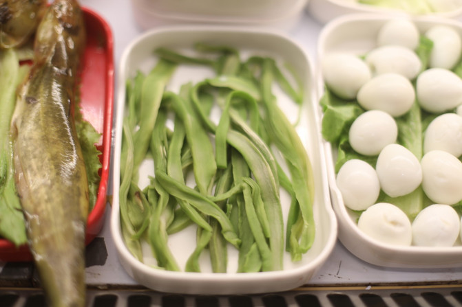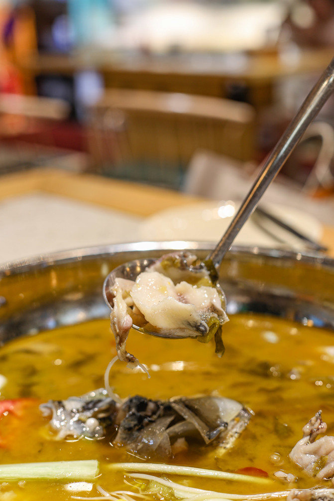 乌头鱼鱼肉鲜嫩,而且店里的火候掌握实在不错,刚刚烫熟的鱼肉口感最是出众。在锅底中沾上汤汁,软滑的鱼肉很有一种入口即化的感觉。