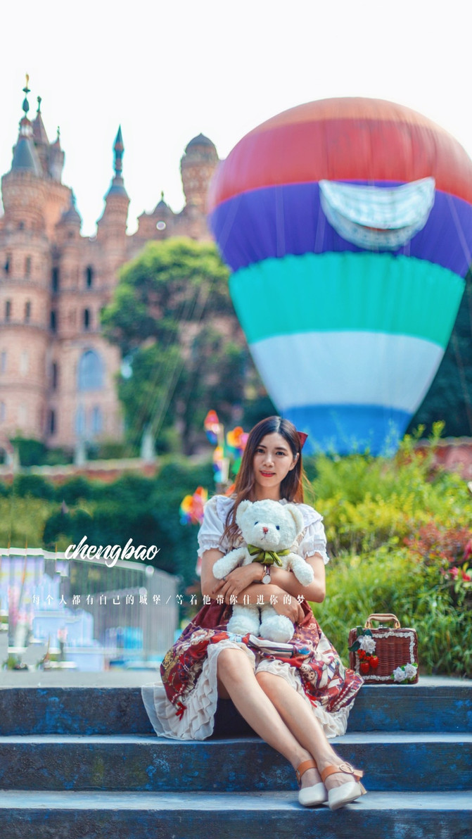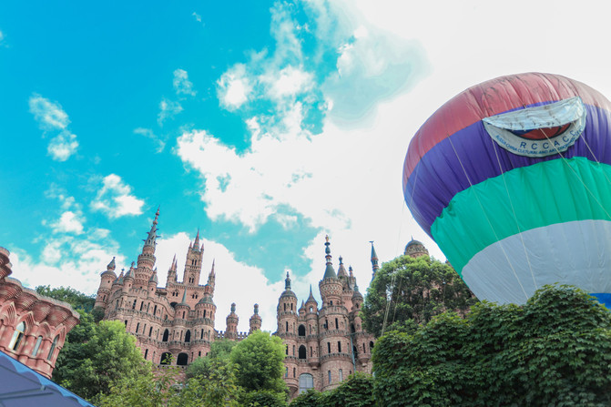 城堡与城堡之间的花园也充满了各种童话的元素,无论是雕塑或是巨大的热气球,都让人有一种走入童话世界当中的感觉,非常奇妙而有趣。