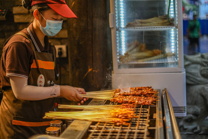 小吃街中,各种传统的美食格外诱人,爽口冰凉的冰粉,各种串串 和美 食,都让人食指大动。