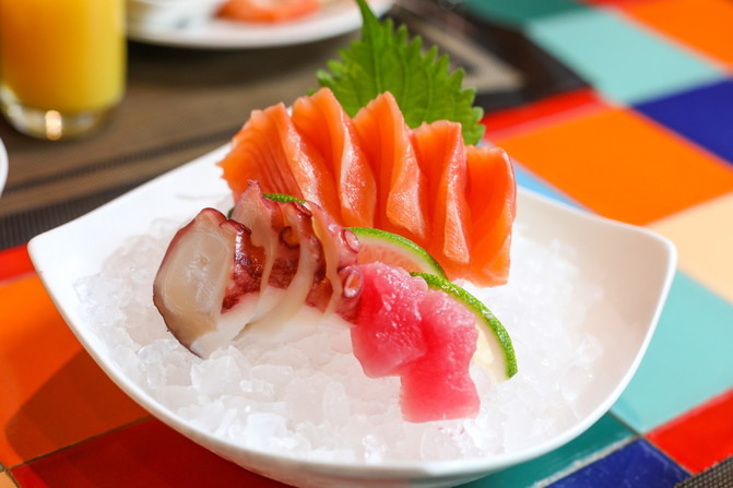 海鲜 自助餐最受欢迎的一定是各种海鲜。这里的海鲜种类极多,从刺身到冷盘,再到天妇罗,各种不同的烹饪方式,相同的是海鲜都非常新鲜。