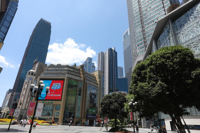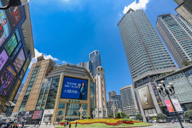 解放碑步行街高楼林立,各种崭新的高楼成为了代表着发展的风景线。