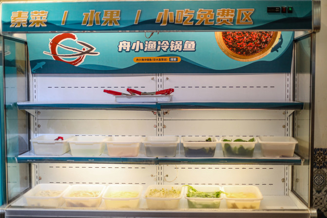 在舟小渔冷锅鱼,鱼类从二十多元到五十元一斤不等,价格已经算是颇为实惠。更让食客喜欢的是,这里的素菜、凉菜和水果都是免费自取的,非常划算。