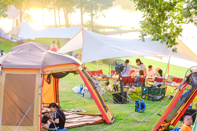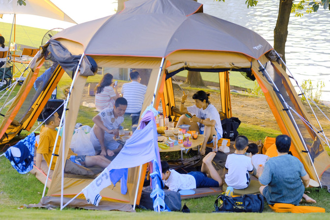 在岸边有一块区域是专门露营野餐的,这里需要付费,好像是58元/次,来的是时候基本已经订满了,非常适合一家人来玩耍。