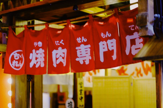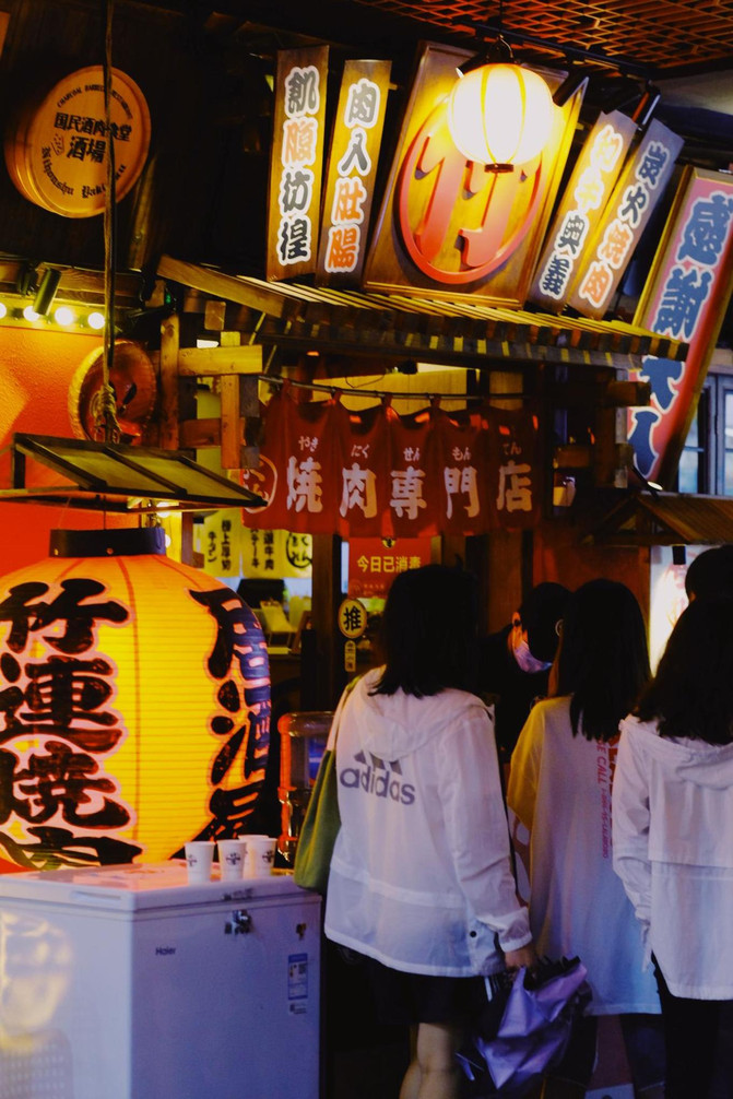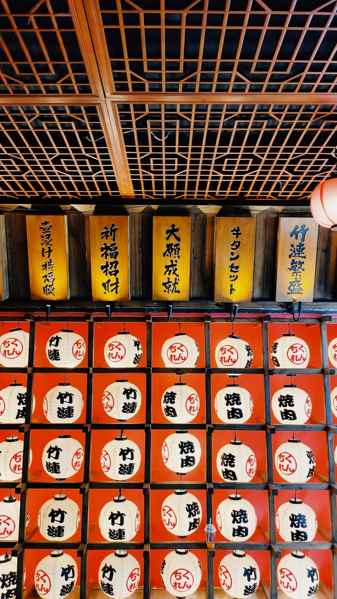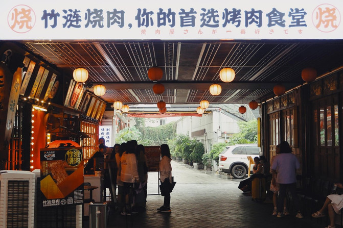排队等的时间也没闲着,门店外一面墙超级适合打卡,背景红色,白色的只灯笼上写着“竹涟烧肉”,特备好看。