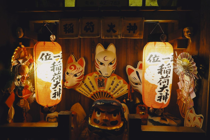 转角过来还有一个小小的“神社”,灯笼、面具都很好看,太喜欢了!