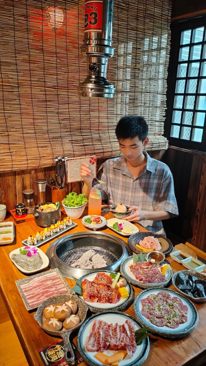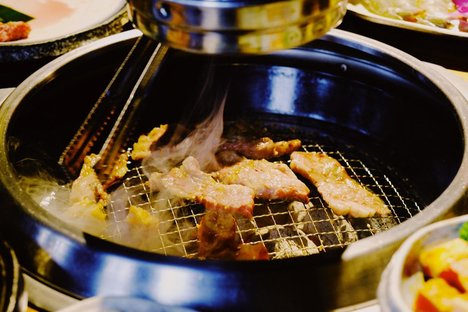 我们运气好,碰上的是包间,座位是半榻榻米,每张桌子都有独立的吸烟系统,烤肉的时候把吸烟装置拉下来即可,不然整间屋子都是烟雾很呛人。