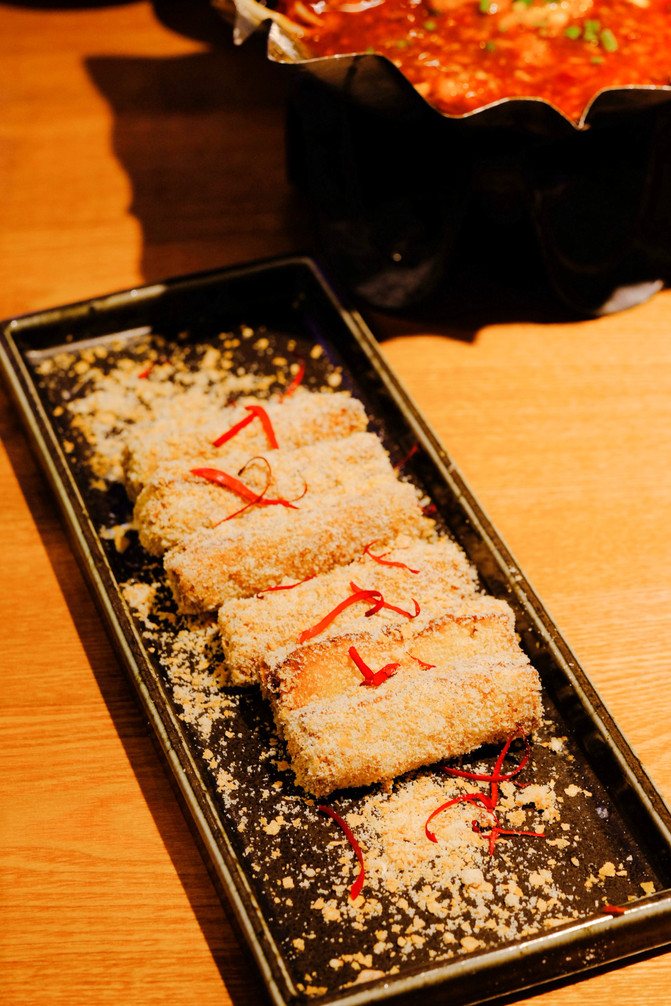 包浆豆腐里面的折耳根蒜蓉简直太巴适了,很嫩很多浆,外酥里嫩。