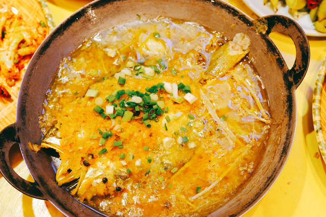 黄金酸辣小黄鱼简直爱了,加了黄椒辣乎乎的非常过瘾,比较入味,下饭很香。