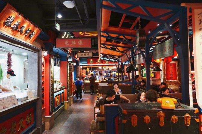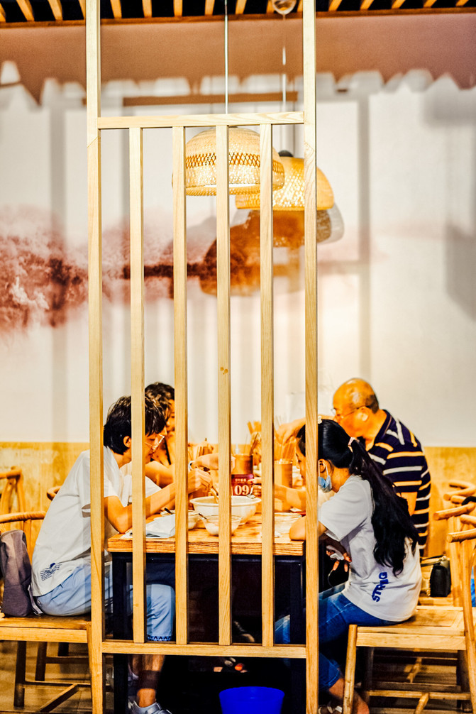 里面的面积不是特别大但是是敞开的一片,小桌子小板凳不仅节省空间同时更市井,颜色看着也很舒服。