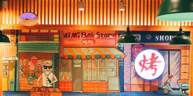 里面的墙壁上有很多好看的墙绘,丰富多彩,绘画风格很可爱有趣,让人吃烧烤的心情特别愉快~
