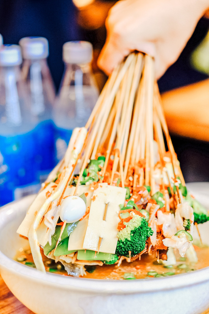 选好串串,再按台号和口味卡上号码牌,快速又准确的上菜,不得不说叶婆婆家的服务和效率都很棒。