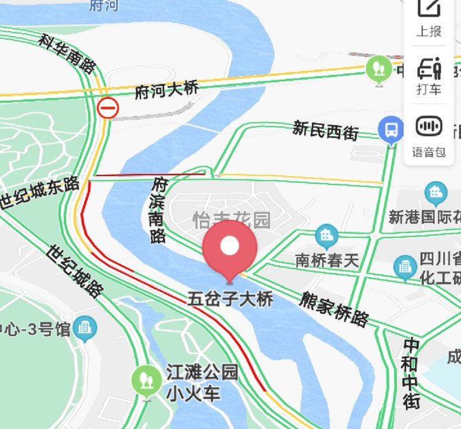 五岔子大桥位于 成都 高新南区,沿中和片区公济桥路向西,跨越锦江、 红星 路南延线与江滩公园、世纪城会展中心相连,也是连接锦江绿道两岸的重要慢行交通桥梁。