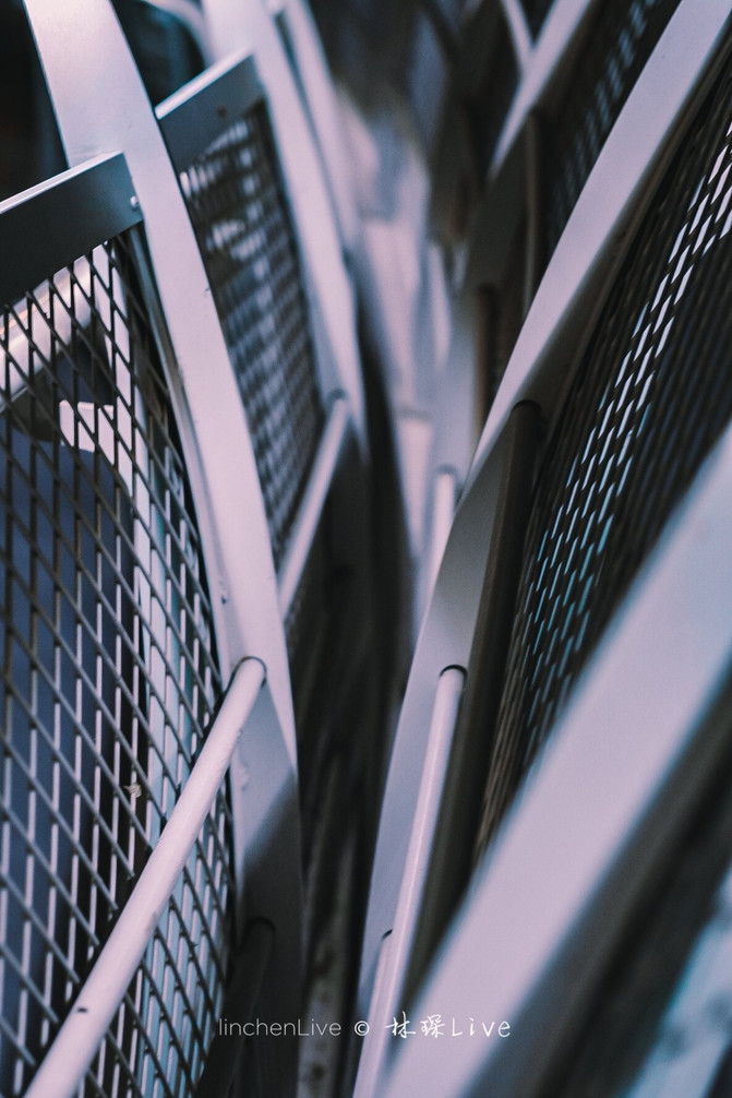 第二个机位是在桥的主道上,透过铁网拍下面,摄影师在上你在下,模糊交织的网格更有神秘感。