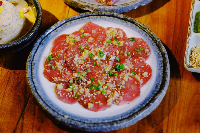 先说说它家的蘸料,吃烤肉当然要从蘸料说起,它家蘸料有三种口味:日式烤肉味、泰式酸辣味、花生碎辣椒面味,个人比较喜欢日式烤肉和花生碎辣椒面,过瘾!