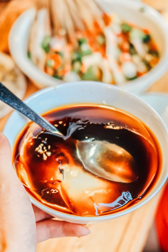 夏天怎么能少了红糖冰粉,吃完钵钵鸡后整一碗冰粉绝对完美,老红糖的香甜搭配上爽口的冰粉,满足。
