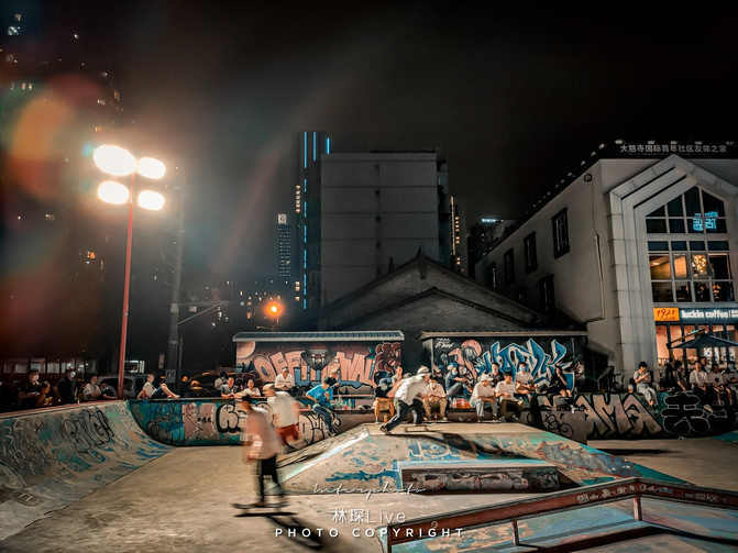 个性张扬的街头文化, 成都 的青年们在繁华的太古里找到了一处滑板天堂。