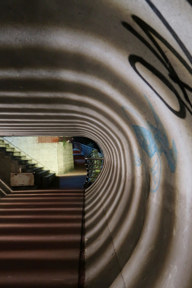 建设路桥下突然走红的网红隧道,看起来像不像是走进时光隧道一般。