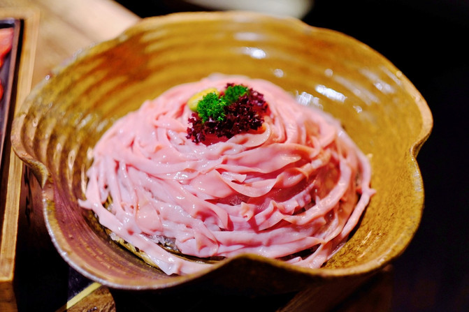 极上厚切牛舌比薄切牛舌吃起来更爽,但是要稍微烤老一点,不然怪怪的。