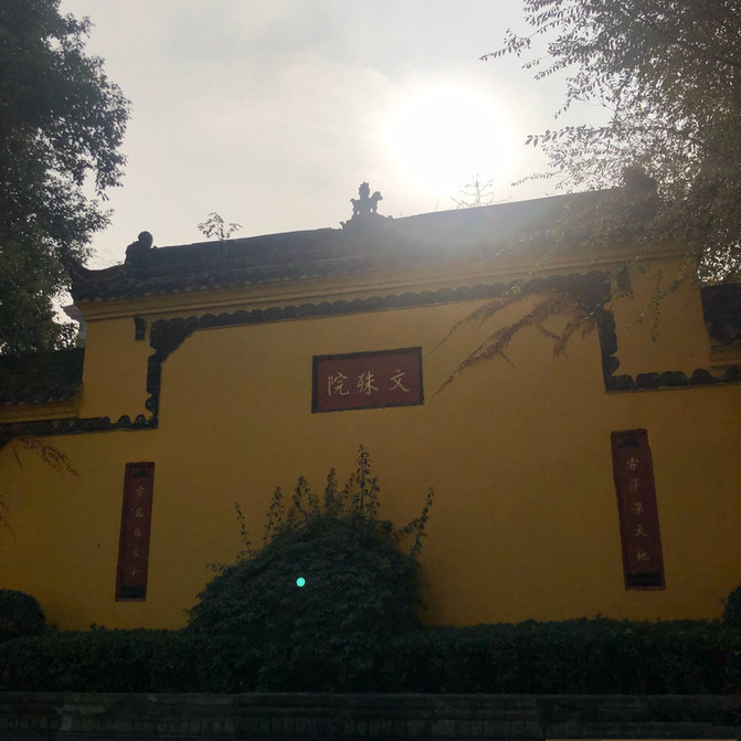 再向前走,就到了文殊阁,这里就是藏经阁所在之处。不见门开,但是在院里发现有几个僧人在打扫落叶。后来知道了藏经阁平时是不对游人开放的,只在几个特定的日子开门迎客。据说,里面收藏了各种佛经上万册,其中有康熙皇帝御赐的《药师》《 金刚经》等作品,还有明清以来的书画作品,最著名的当属康熙皇帝御赐文殊院的“空林”墨迹了。既然没有能进入到这里,那也只能抱着这样的遗憾离开了,或许,带有一点儿遗憾才让我们的生活变得有了些意思吧。