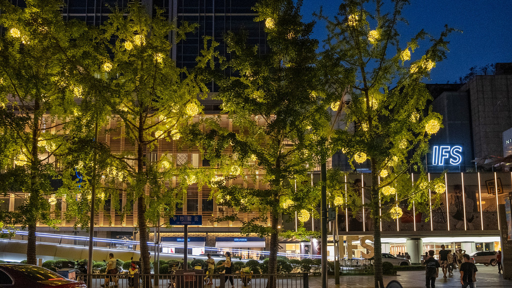 夜里走出商场,才发现白天周围种植的树木都亮起了小圆灯,流光溢彩,煞是好看,仿佛“宇宙中心”的辉煌永不落幕。不知道下次再回成都,IFS又会给我什么样的惊喜呢?