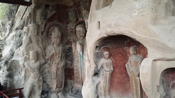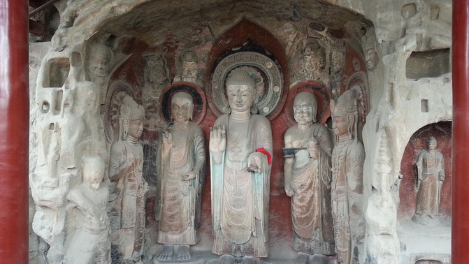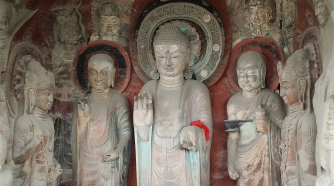 大佛窟是我国初唐时期佛教造像艺术的代表作。这个窟的佛像和其它地方的佛像不一样,他们都是带有耳环的。所以很多人说这里的佛像是武则天的替身像,武则天去世后升为佛祖了。