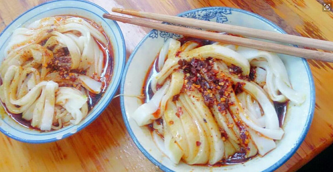出来已经是饿的前胸贴后背了,进入市区,接头小巷随处可见的米凉面香气扑面而来