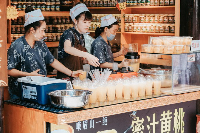 此外锦里还是一条美食街,冰粉,钵钵鸡,三大炮,蹄花,醪糟,锅盔,兔头等让你欲罢不能。