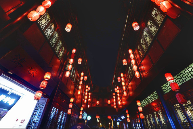 外地的朋友来成都,夜景我都会推荐锦里,街道两旁的红灯笼,特别好看。街道两侧是青色的砖墙和仿古的雕花木楼,古朴雅致。