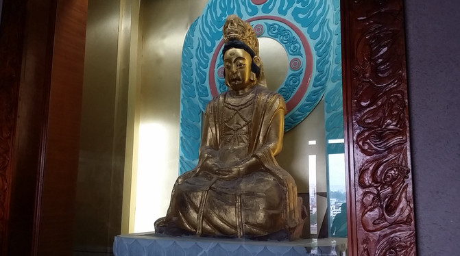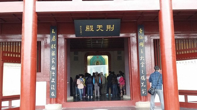 大佛楼的底楼为女皇真容地---则天殿。该殿始建于唐,历史上曾称"武后真容殿"、"则天圣后殿"。