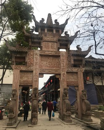 继续行走,可以看到一座图饰古朴典雅的牌坊—“葭萌牌坊”。这座葭萌坊,高8.6米,宽6.8米,气势雄伟,上面的楹联和图案,集中展现了昭化悠久的历史、厚重的文化、独特的交通军事地位和神奇的太极山水。牌坊东面的柱联是“蜀道三国重镇,天下第一太极”。上面刻有“蜀汉兴于葭萌” 、“桔柏古渡”、“山水太极”图案。
