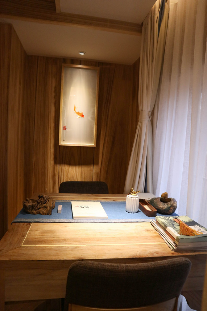 各种细节能体现酒店的文化氛围:古典音乐、古董字画、实木装修、庄子书籍。可惜木有汉服、旗袍这些衣服,下一次我还是会选择这里,下次我一定要带上汉服,拍个美美的照片。