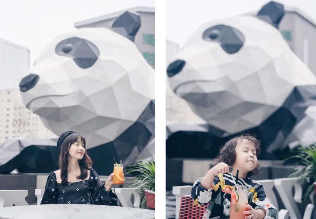 成都IFS的“爬墙大熊猫”已经名声在外,每天都在七层雕塑广场和来自各方的游客合影。其实这个由国际著名艺术家劳伦斯·亚振兹创作的巨型熊猫艺术装置是有名字的,叫“I AM HERE”(中文:《我在这里》),意在打破严肃商业空间与人之间的隔阂,让我们思考自身的存在,对城市繁荣发展进行反思。