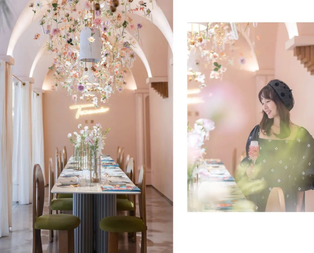 花厨刚开业就被朋友圈刷屏了,身临其境感觉比朋友圈的照片还美。这个以鲜花为主题的餐厅,整体是粉绿配色,居然毫不违和,一点都不“乡村风”,搭配法式拱门,满满的精致和高级。一进门便感觉到花团锦簇,仙气扑面,少女心瞬间被点燃。
