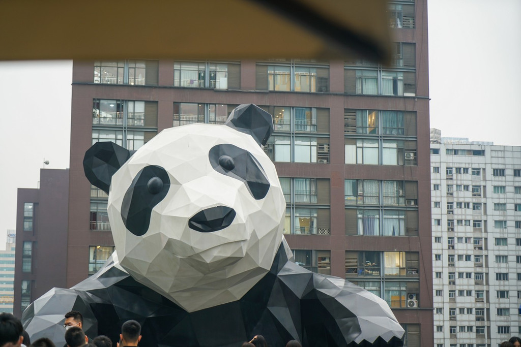 两天都时间来不及去大熊猫培育基地,不妨就在这里过过瘾吧!在 成都 IFS 1楼乘坐电梯直达7层,就可以看到大熊猫可爱的正脸。这座巨型熊猫艺术装置身高达1.5米、重13吨,由国际著名艺术家劳伦斯·亚振兹(LAWRENCE ARGENT)创作而成,取名为“I AM HERE”,不过大家还是习惯叫它“爬墙熊猫”,哈哈。