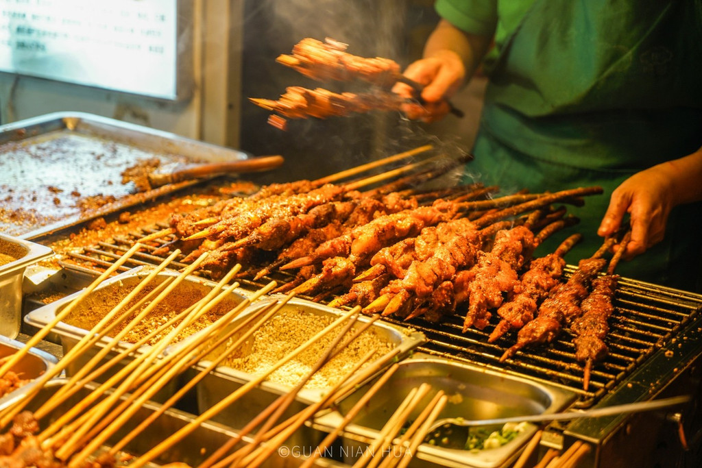 我刚下出租,立马一阵阵香味就扑鼻而来。十字形街道上分布了各种各样的小吃,美食矩阵一路拉开。记得之前看过一期《天天向上》,就有重点介绍了建设路美食。