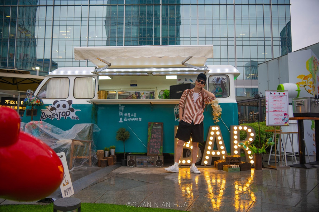 庭院里可爱的美食大巴,也超适合拍照。