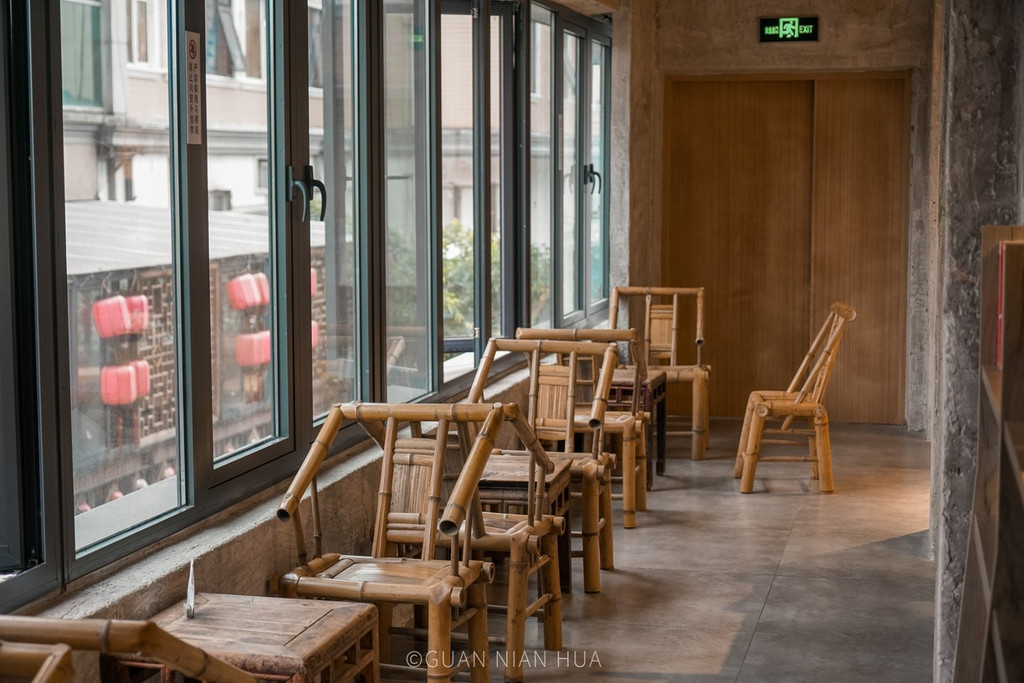 成都 猛追湾店还结合了一些 成都 特色, 比如 除了延续几何书店特色拱形岩洞设计外,还融了一些 成都 本土元素, 比如 坝坝茶八仙桌、太师椅、条凳等,还蛮有趣的。