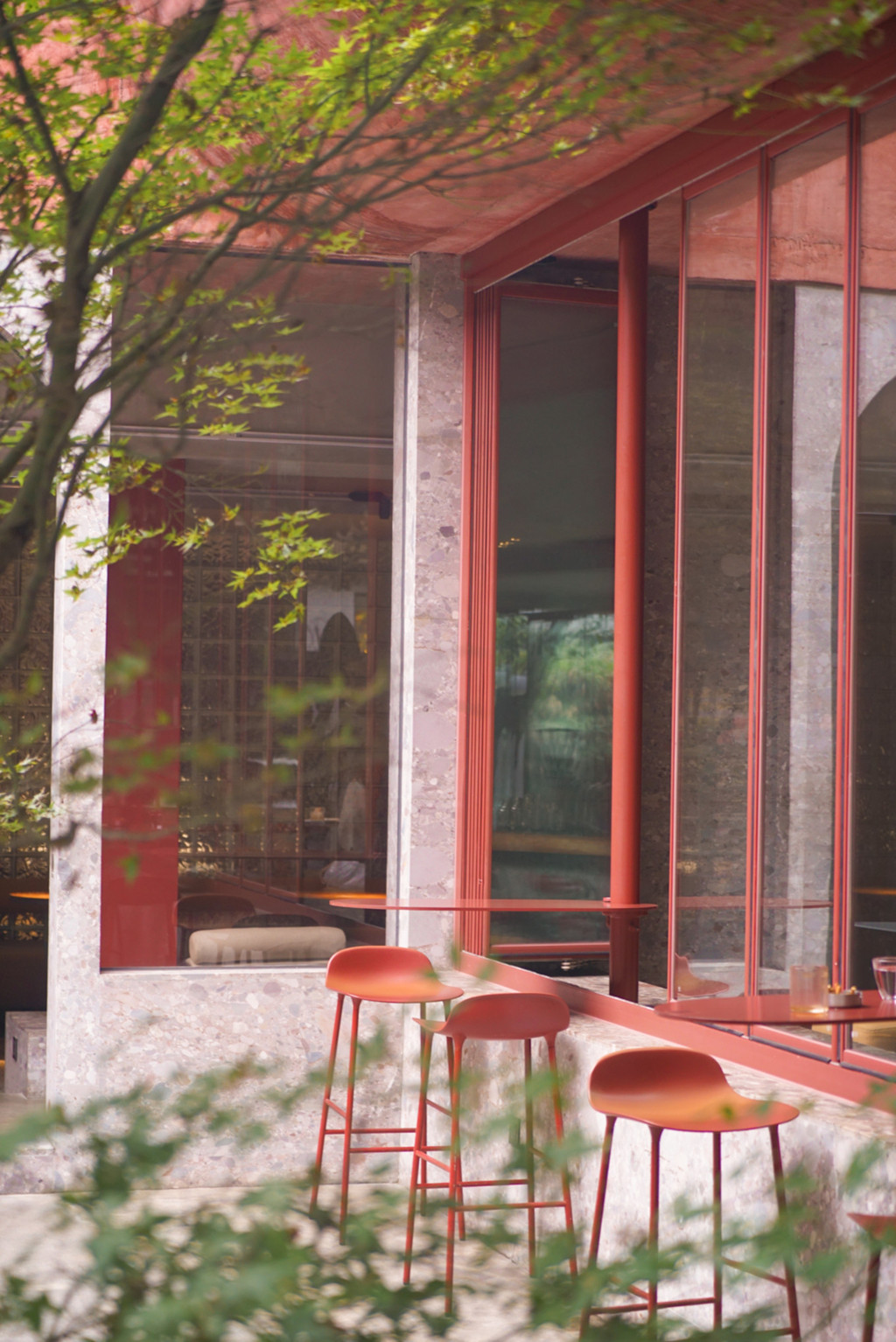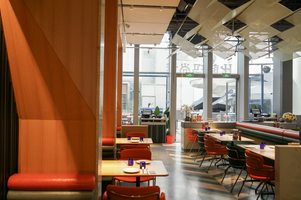 街边最亮眼的莫过于这家雷门火锅,将咖啡、火锅、酒吧、画廊融为一体。砖红色的几何设计,格外适合拍照,我在边上走了一大圈,都不敢相信这竟然是家火锅店!?